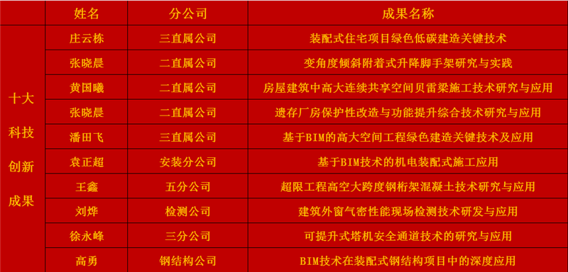 在成果征集階段,集團共收到來自20個子(分)公司的29項科技成果,涵蓋裝配式建筑、綠色建造、城市更新等綜合施工技術研究與應用和基坑支護、高大空間支撐等關鍵技術實踐與總結,涉及工程施工核心業務的多個關鍵環節。預賽期間,15項成果在評委會充分考量其創新性、技術難度、實用性、可推廣性、效益性、匯報展示效果6個維度后取得高分,順利進入決賽。